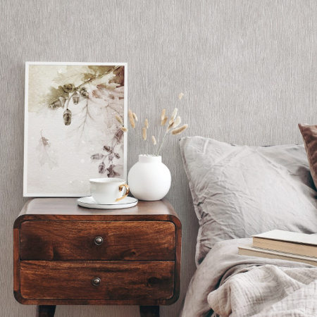 Мягкость текстуры и приглушенные тона создают эффект окрашенной стены. Эти обои не претендуют на роль центрального акцента, а тонко намекают на то, что истинная красота часто скрыта в деталях. Их привлекательность заключается в универсальности: они служат изысканным фоном для мебели, произведений искусства и аксессуаров, при этом сохраняя свою элегантность.